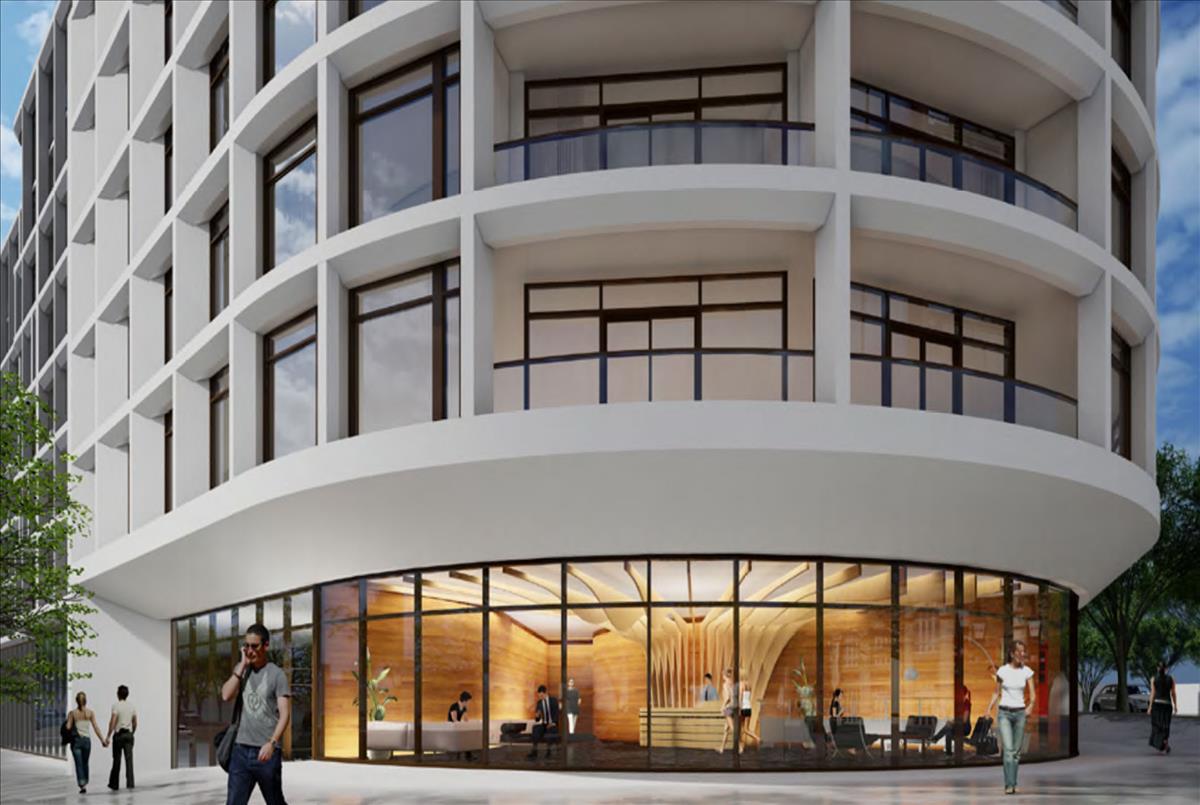 elements and active ground-floor uses. Situated at the northwest corner of